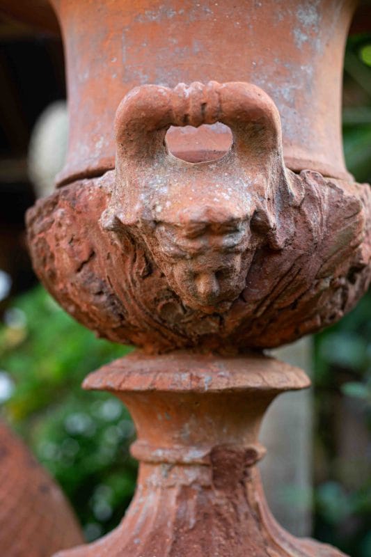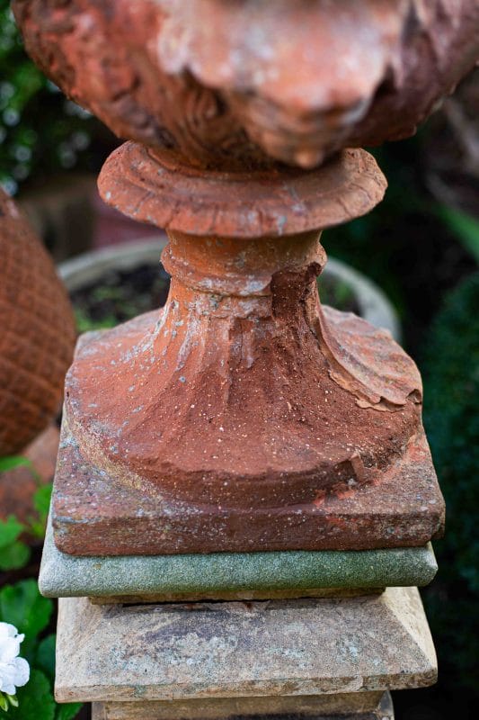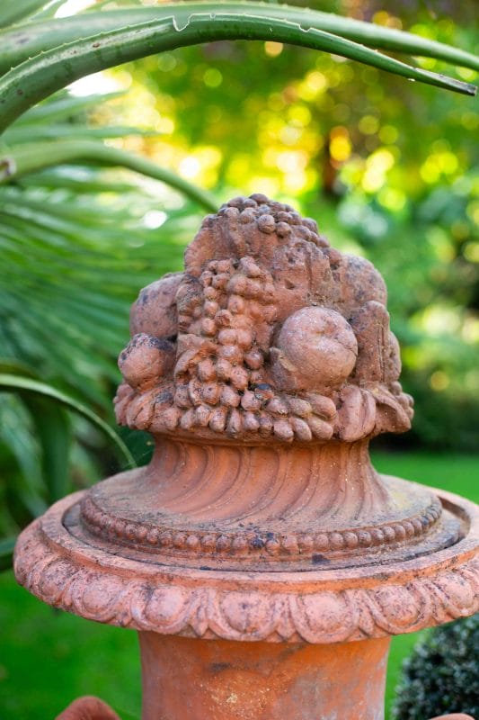 19th Century Terracotta Gate-Finial Urn Topped with Fruit